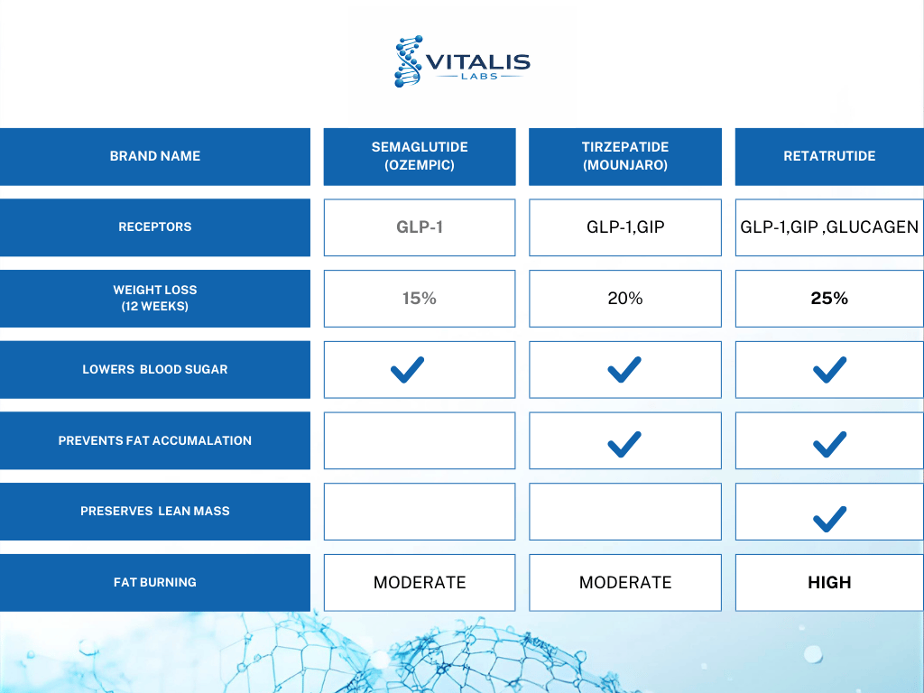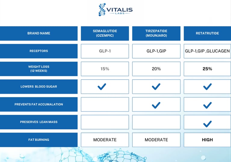 Retatrutide vs Tirzepatide vs Semaglutide: Mechanisms, Weight Loss Results, and Clinical Differences